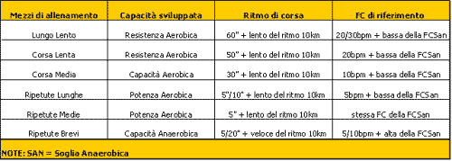 Dalla tabella su menzionata risalta il fatto che nella Mezza Maratona un 50% del chilometraggio generale è corso sui ritmi medio/lenti, e un 50% sui ritmi veloci e brevi; mentre nella preparazione per la Maratona ben il 70% dei chilometri è corso a un ritmo medio/lento e un 30% a un ritmo veloce, e neanche troppo breve (solo 5% di ripetute brevi "100/500mt").