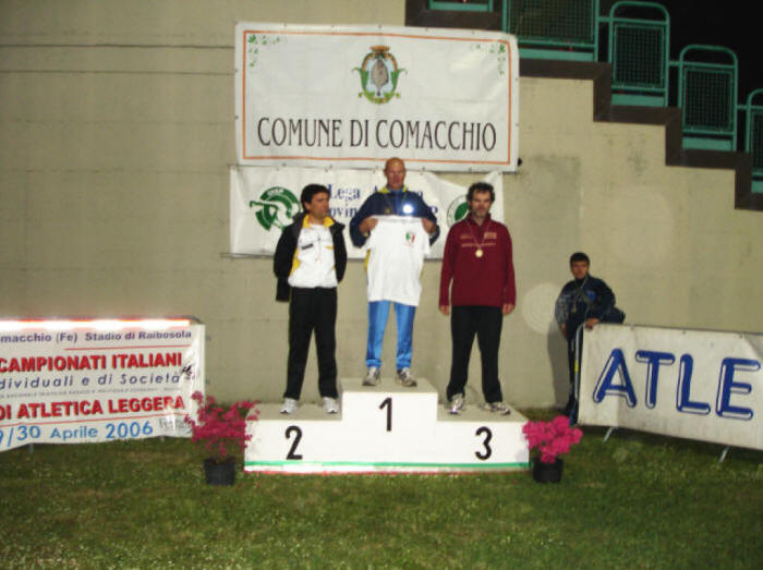 | Appuntamento a Comacchio - Ferrara per i campionati Italiani di atletica leggera su pista uisp. I 5000 metri vedono impegnati 6 atleti f̣ di pe, in 3 distinte batterie. Cagio e Ferro nella categoria assoluti si attestano rispettivamente su 16' 42'' e 17' 29''. Nelle categorie amatori, millemosche centra l'ennesimo podio conquistando il 3°posto nella categoria G con 18' 28'' coś come vengo, ottimo terzo nella E con 19' 19''. Gigione sfoggia una smagliante condizione ottenendo 18' 49'' dopo soli 4 giorni dalla 50 km di romagna e forvezeta chiude con 20' 43''senza lode ne infamia. Plauso all'organizzazione per essere riuscita a rispettare orari nonostante il fitto programma. |